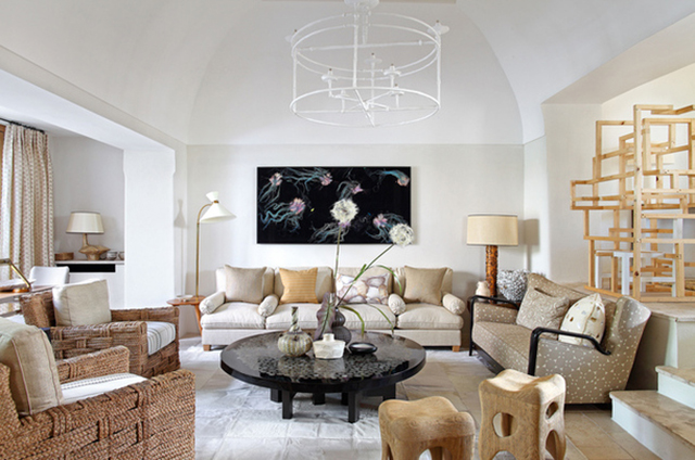 I have many places I want to go to, like many but, Capri in Italy is by far on the top of my list. At this point it has moved up to be the tittle of my list, really! Hubby take note! I have the thought of me walking down one of its many hilly stoned walkways down to the beach with the air blowing my hair while my feet warm up at the touch of the hot ground. I may even fall down trying to take in the amazing view. Now, this breath taking beach home in Capri designed by the one and only Jean-Louis Deniot makes my wishes go one step further and of all of a sudden I start thinking how about a vacation home there, even if it's in a million year? One can dream! Had I not read that Jean-Louis Deniot designed this home I would've thought that it was created by nature itself, especially the outside. Enjoy!